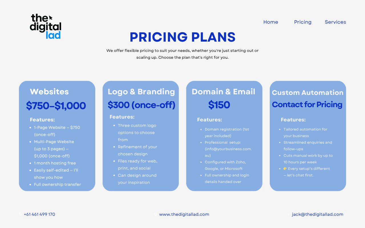 Quality websites and workflow automation that save you 5-10 hours per week — at prices that make sense for tradies and service businesses.